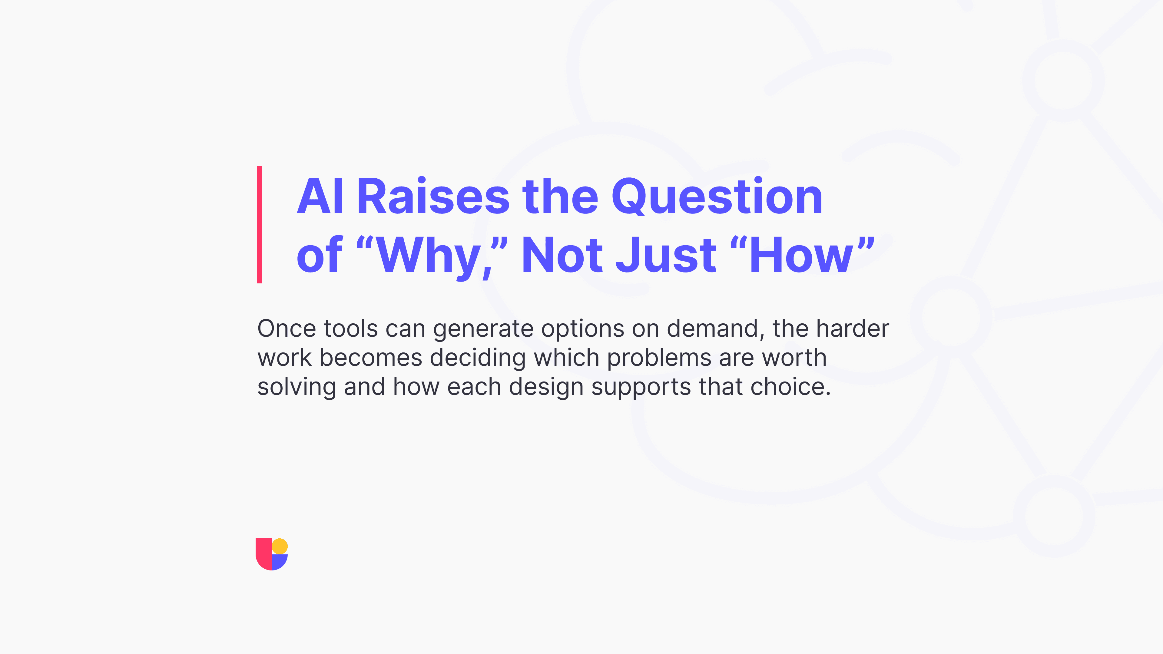 That shift has not made design leadership less relevant. It has simply moved the center of gravity. When more of the execution is supported by AI and standardized systems, design leaders are asked for something different: clearer direction, stronger framing of problems, and a consistent way of keeping user experience visible while the work speeds up around it.