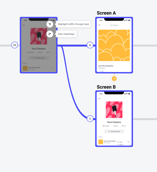 In other words, it is a graphical representation of which screens users utilize to complete a specific task, how they move around your prototype, and, most importantly, which screens they’re on when they decide to leave.