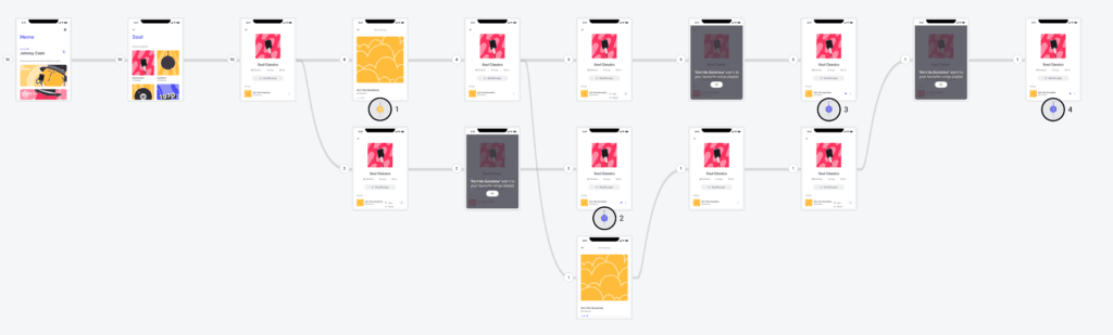 User Flow visualizes the path a user follows from one screen to the next. It helps you understand the behavior of your users, and how they interact with your prototype and create a conversion funnel for it.