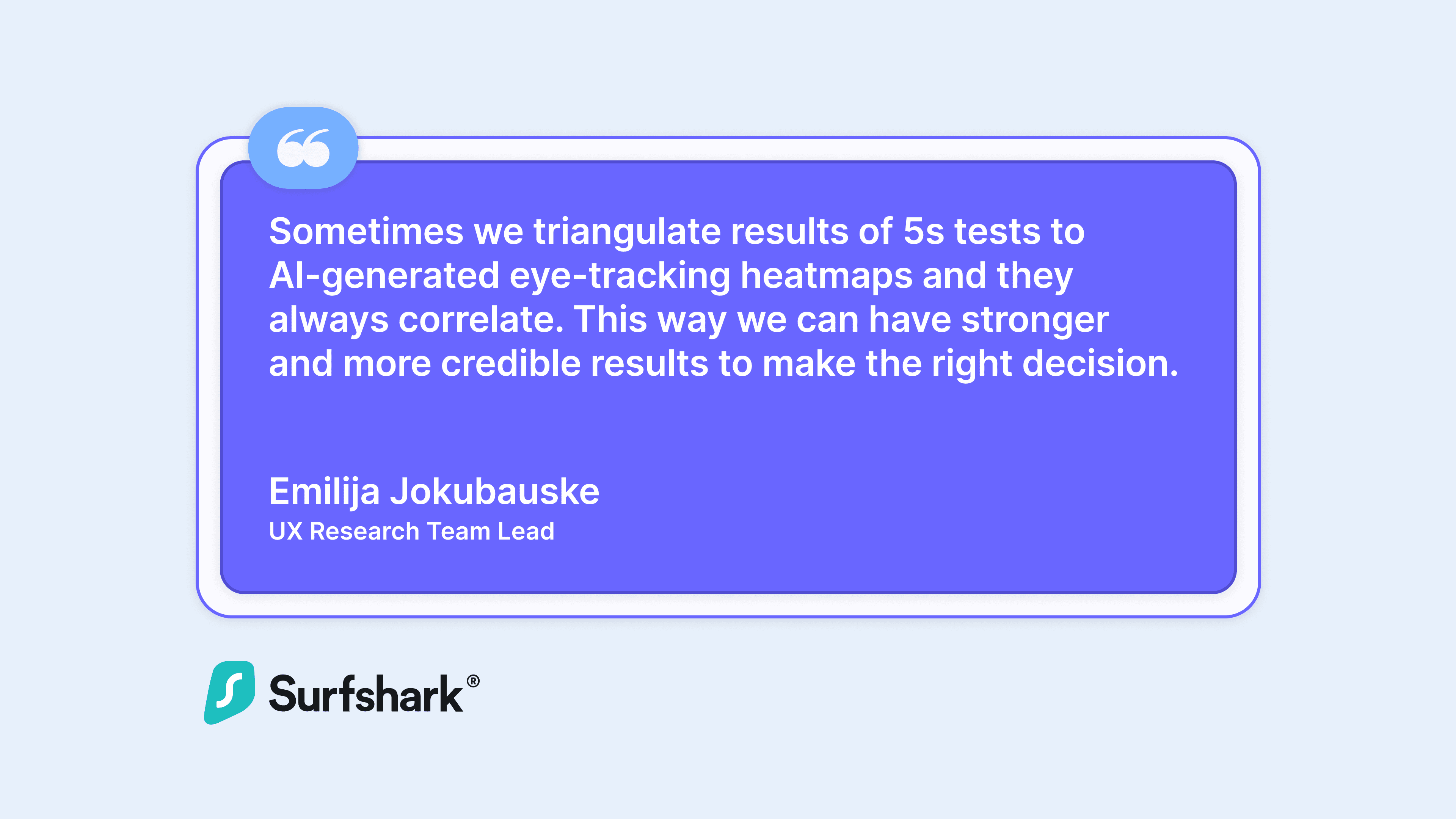 Thanks to Useberry’s speed and simplicity, Surfshark can quickly validate design decisions and ship faster.
