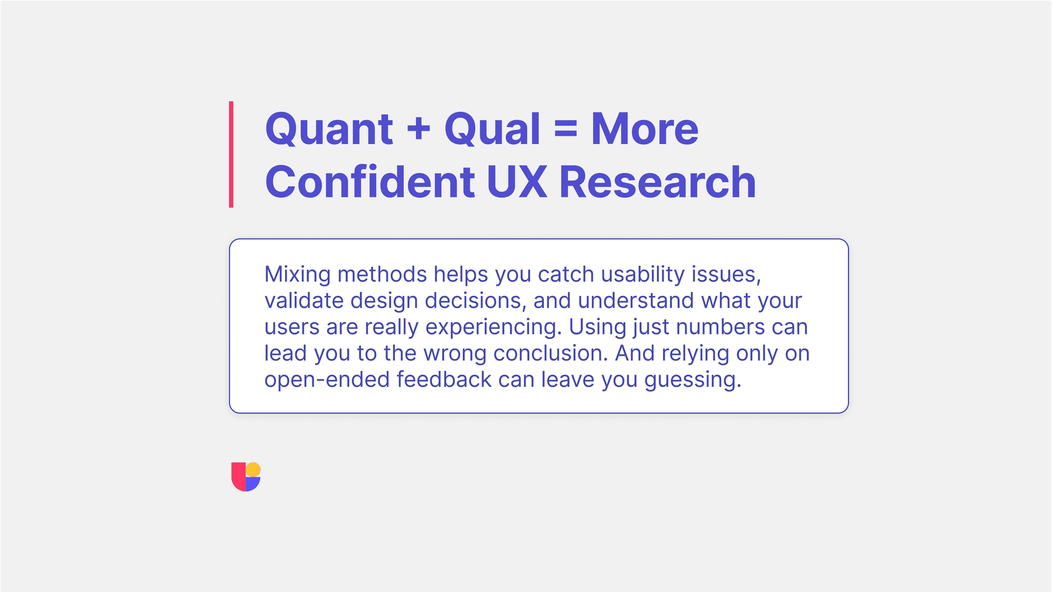 Mixed methods UX research brings together qualitative and quantitative approaches to paint a fuller picture of your users’ experience. Teams that pair success metrics with think-aloud videos, or tasks with follow-up questions, consistently make better design decisions.