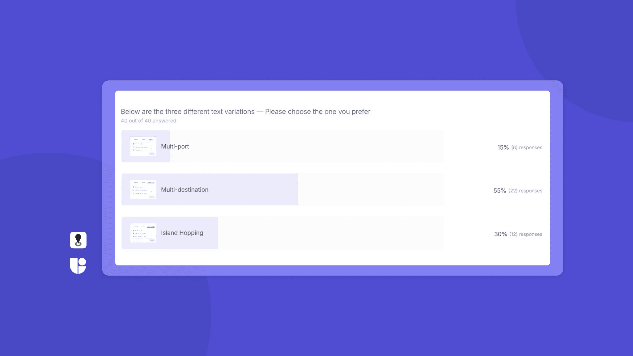 By running around 20 copy tests on Useberry in different languages, Ferryhopper was able to refine and establish an optimized approach for conducting unmoderated microcopy preference tests.