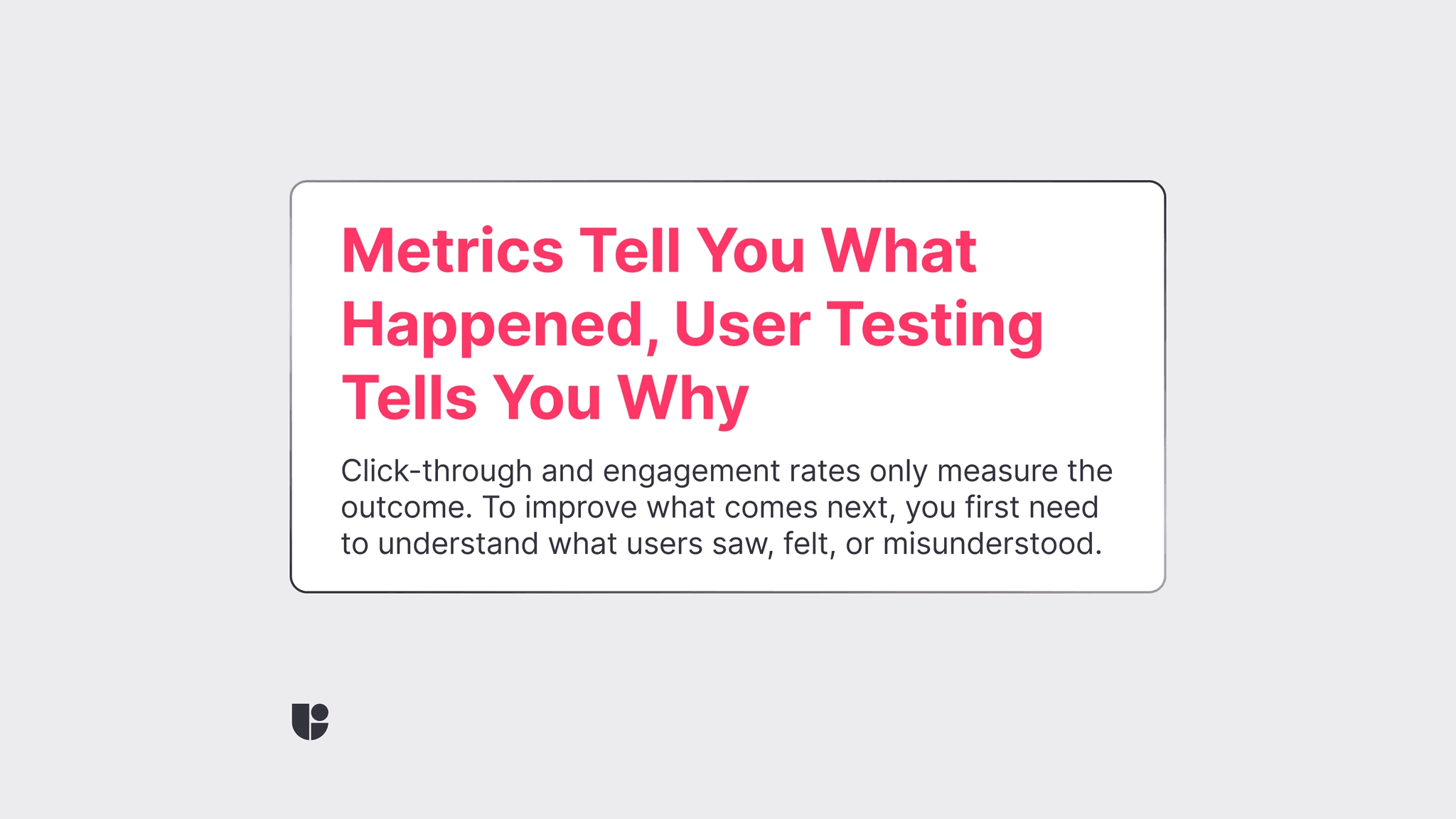 So to sum up the points: If you want to connect your creative performance to real audience understanding, start with a simple user test for quick and easy feedback. This small addition to your workflow gives you user insights that marketing numbers alone can’t provide. They show what’s clear, what’s confusing, and what drives people to act.