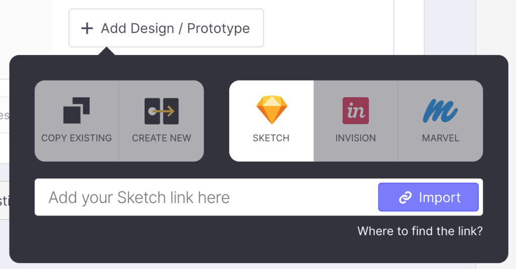 Click on the Sketch choice, paste the copied Sketch URL in the respective field, and click “Import”.