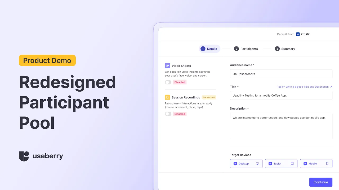 ✔️ Improved Participant Pool UI allows for an easier recruitment experience when using Useberry’s participant pool and recruitment integrations.