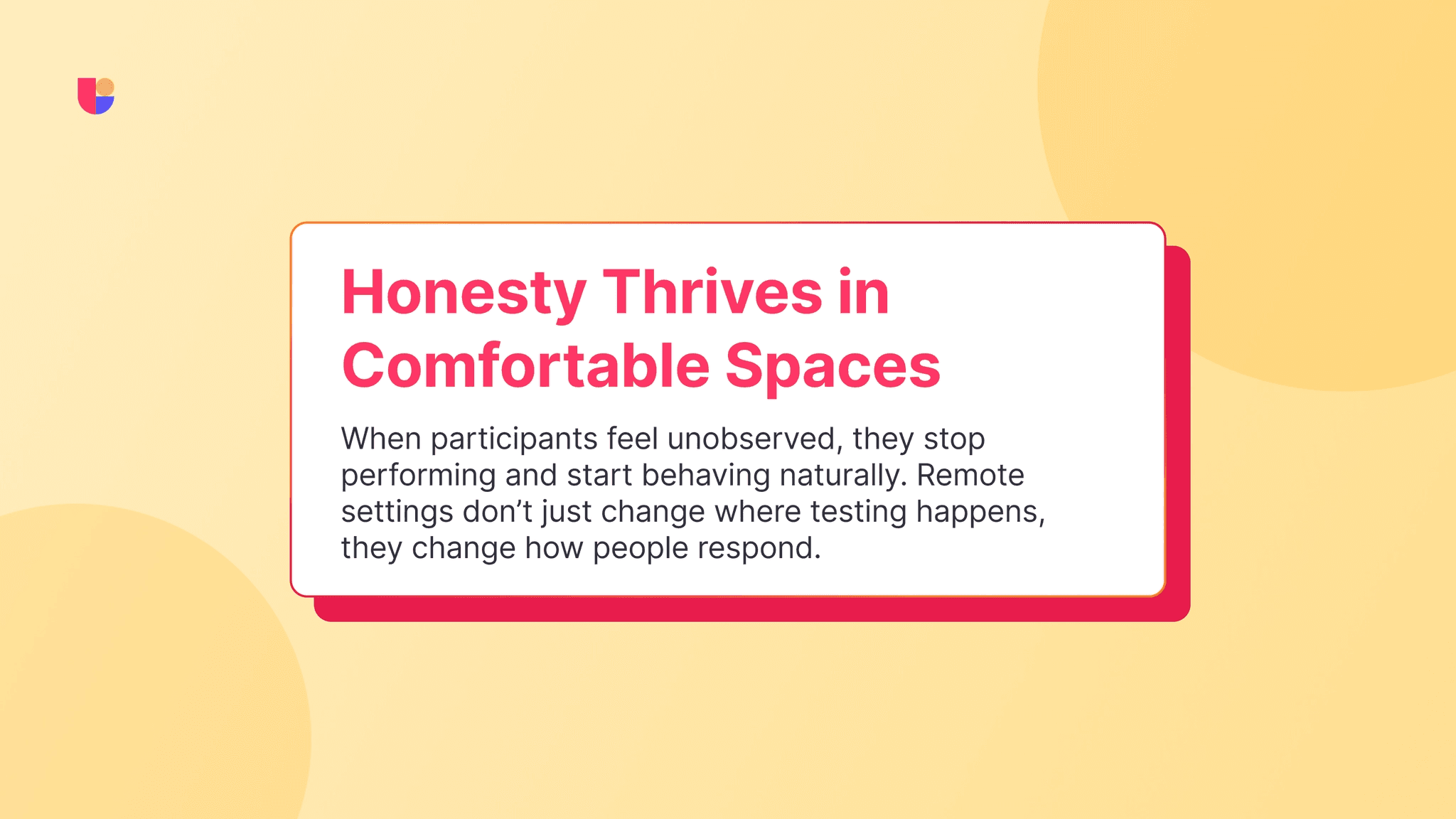 Some participants freeze up when they’re in a testing room. They overthink every move because someone is watching. You can sense them searching for the “right” answer, trying not to disappoint the person sitting across from them.