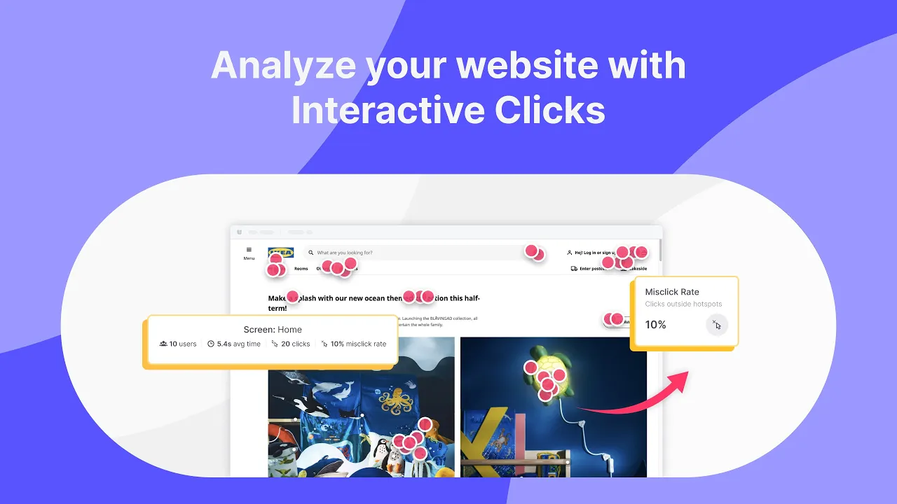 Interactive Clicks will enable you to understand how your users engage with dynamic elements of your website. They will visually reveal precise clicks on every component of your website and cover the areas where heat maps come up short.