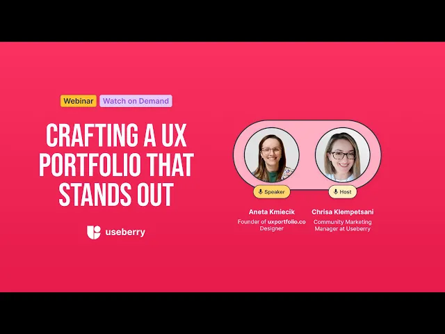 That’s why Useberry recently teamed up with Aneta Kmiecik to share invaluable tips on building a UX design portfolio that truly stands out. This webinar is packed with actionable lessons that anyone, whether just starting out or looking to level up, can apply to their portfolio creation, storytelling, and design process.