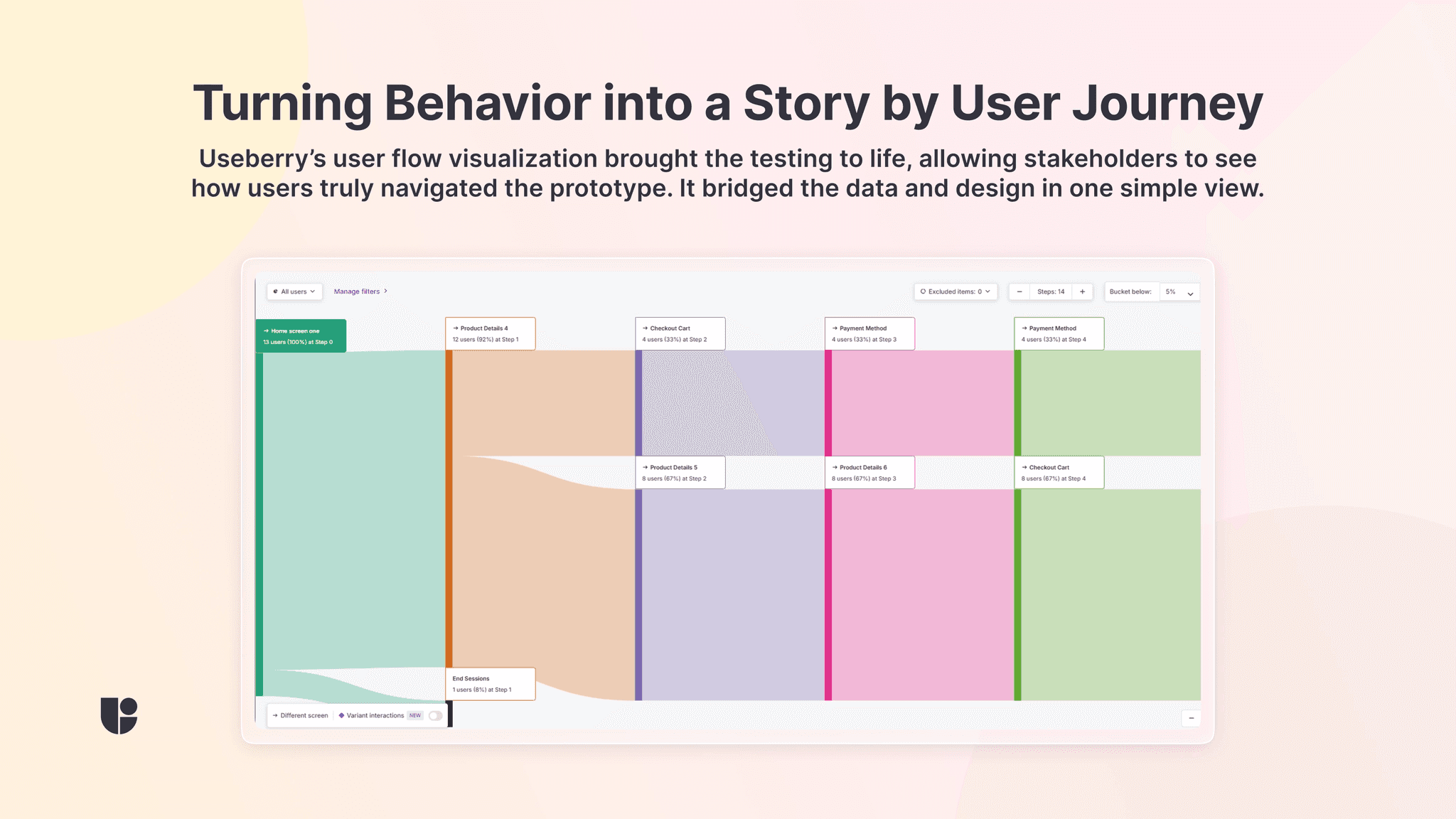 Since Useberry automatically tracked all user actions, I could visualize user journeys and compare behaviors across participants without having to manually take notes or transcribe sessions.