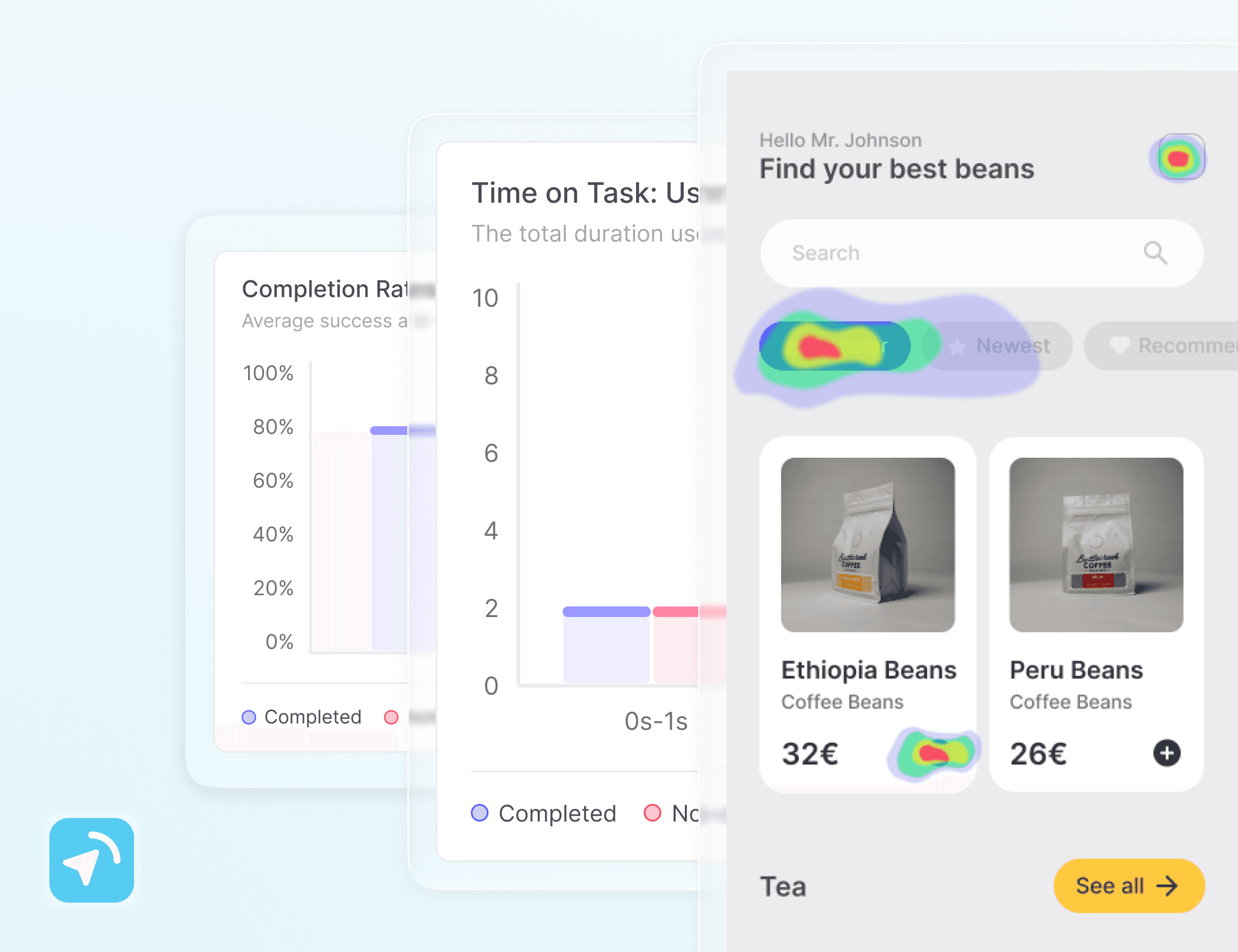 Review where participants clicked first using heatmaps, recordings, and performance graphs. Detect hesitation, wrong paths, or unclear CTAs, and use the data to refine your design.