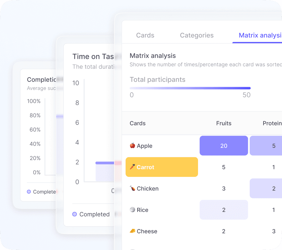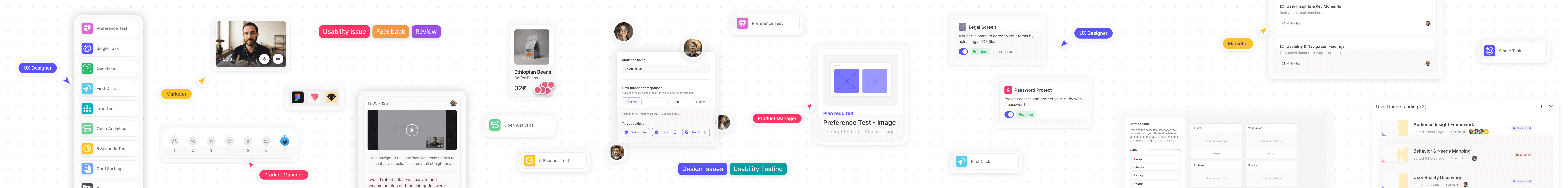 Combine flexible research methods to explore navigation, validate decisions, compare designs, or collect feedback without slowing your workflow.