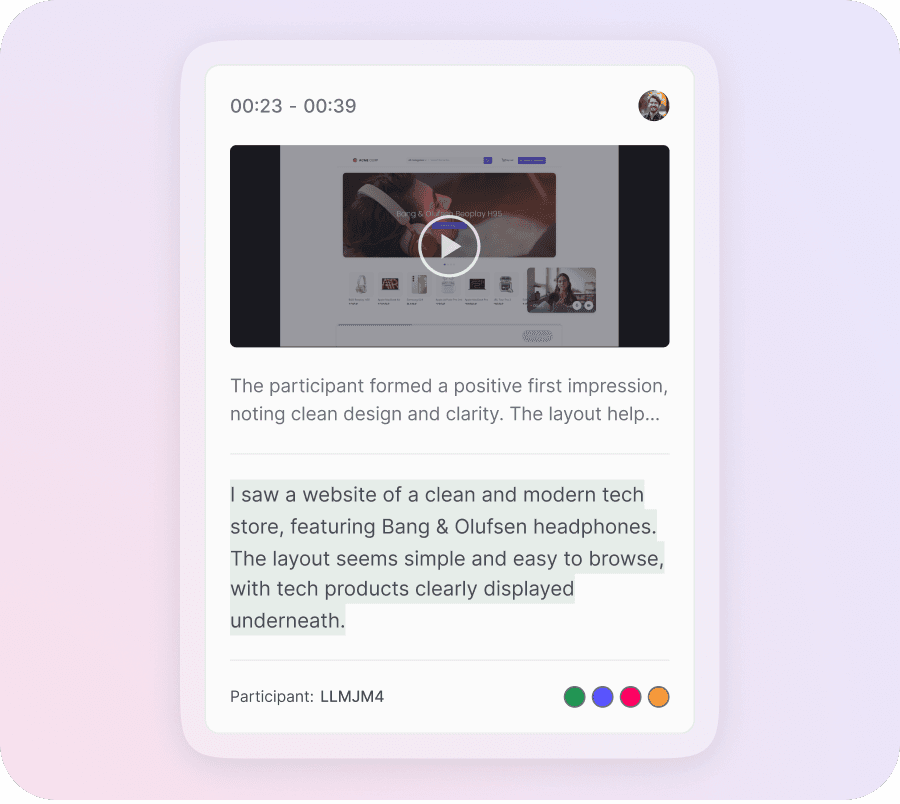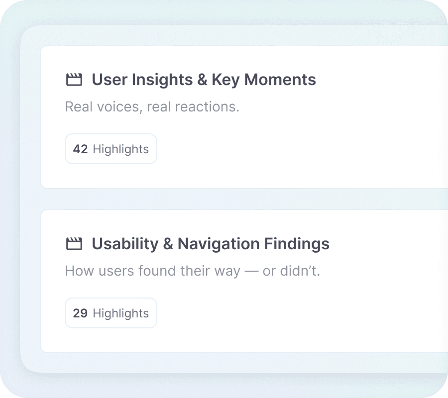 Build a narrative. Combine highlights into reels that tell stories or show behaviors across users - all inside Useberry, no editing tools needed.