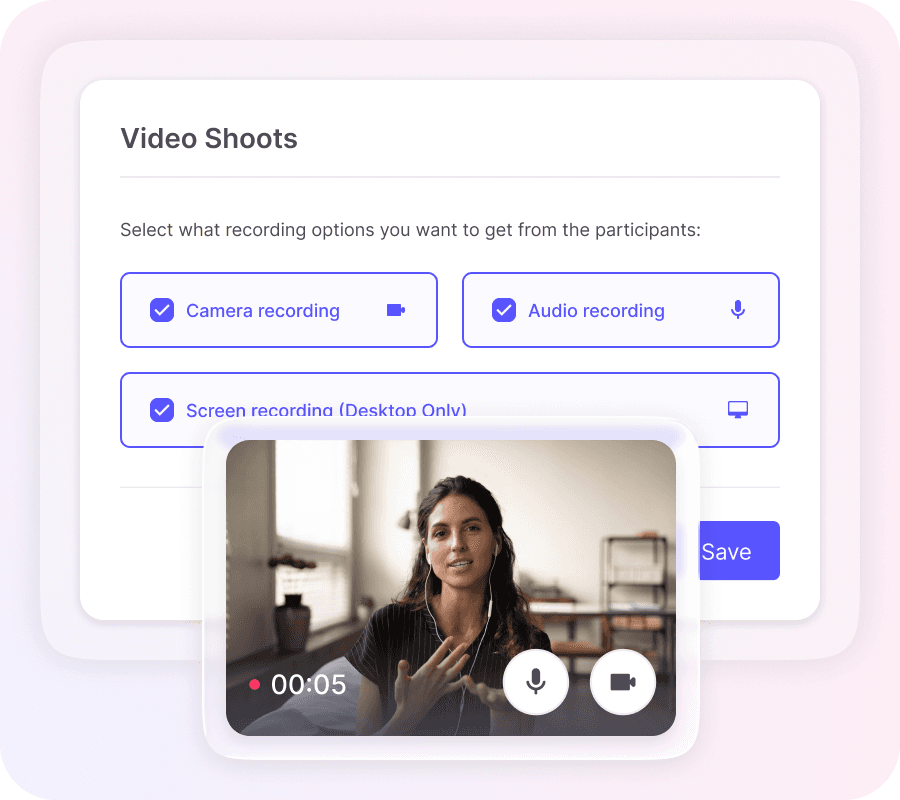 Capture face, voice, and screen with in-app recordings. Or upload videos you already have. Highlight key moments, tag them, and turn them into reels your team will watch and act on.