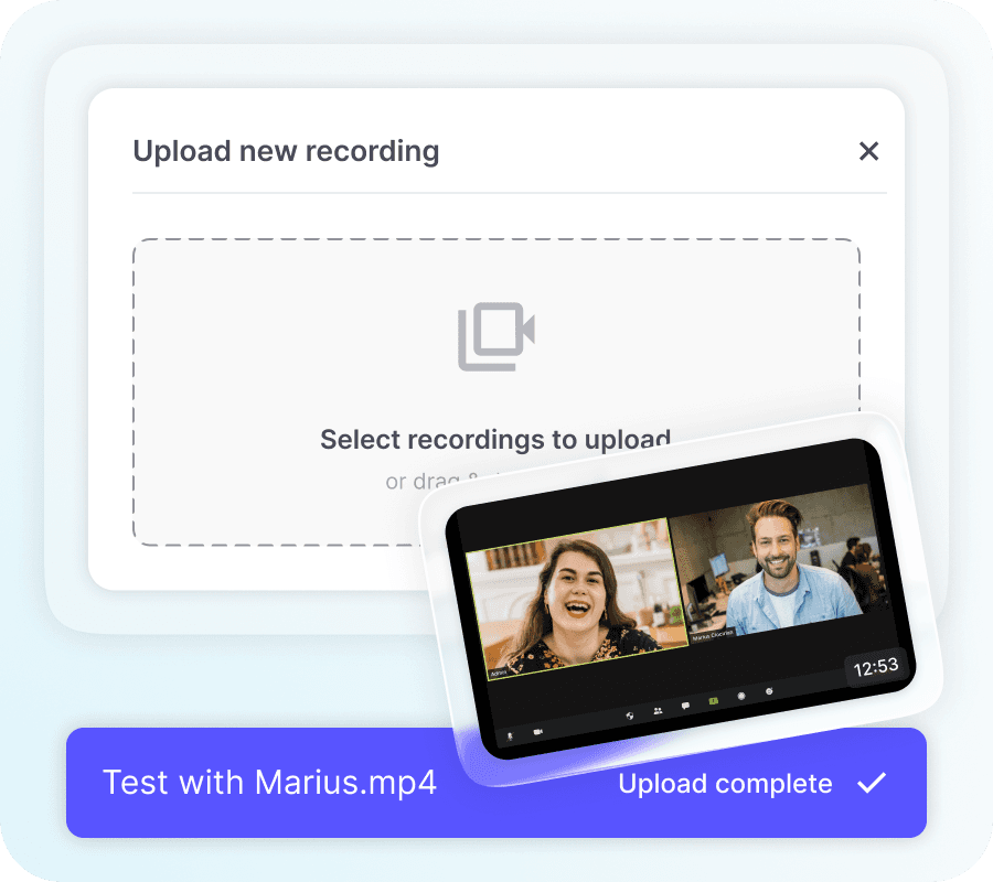 Already recorded elsewhere? Upload video files and unlock the full power of highlight reels, transcripts, and tags - all in one hub.