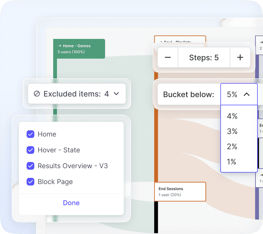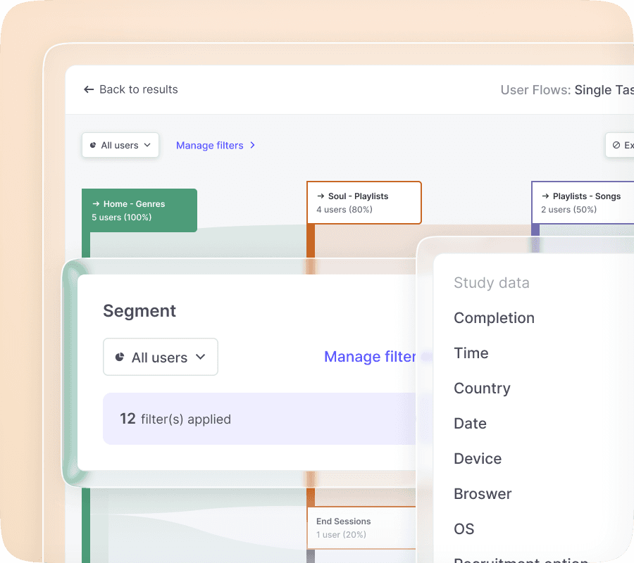 Compare user flows by audience, device, to see how behavior changes across groups.
